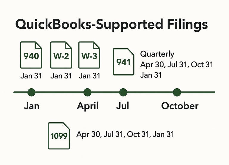QuickBooks Payroll Certified, with proficiency in handling quarterly and yearly tax filings for both state and federal entities